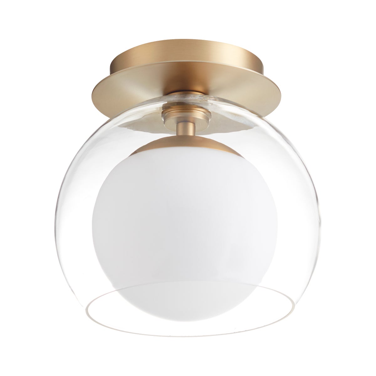 9" Clear with Opal Ceiling Mount - Aged Brass