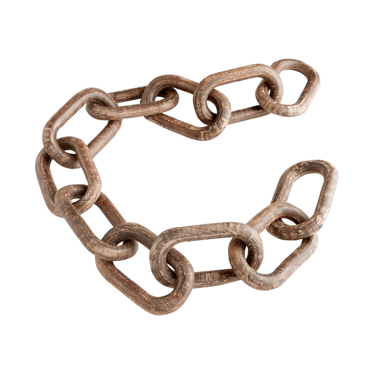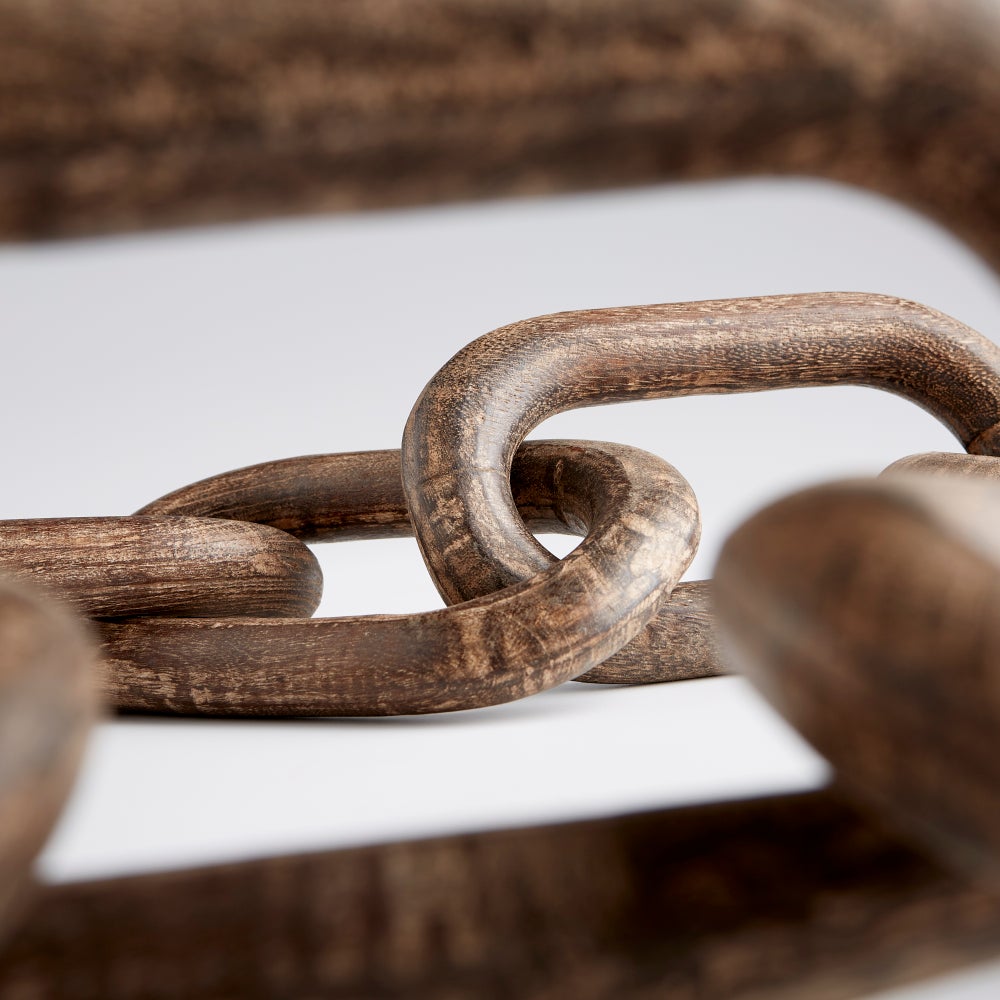 Truly a unique accent, the Cadena sculpture is an oversized wooden replica of chain links. The piece's scale is what really makes it stand out as a peculiar accent, one that will surely turn some heads and generate buzz by any guests at your next home gathering. The grey finish allows this accessory some added versatility, making it fit for any rustic, modern farmhouse, or bohemian themed aesthetics.